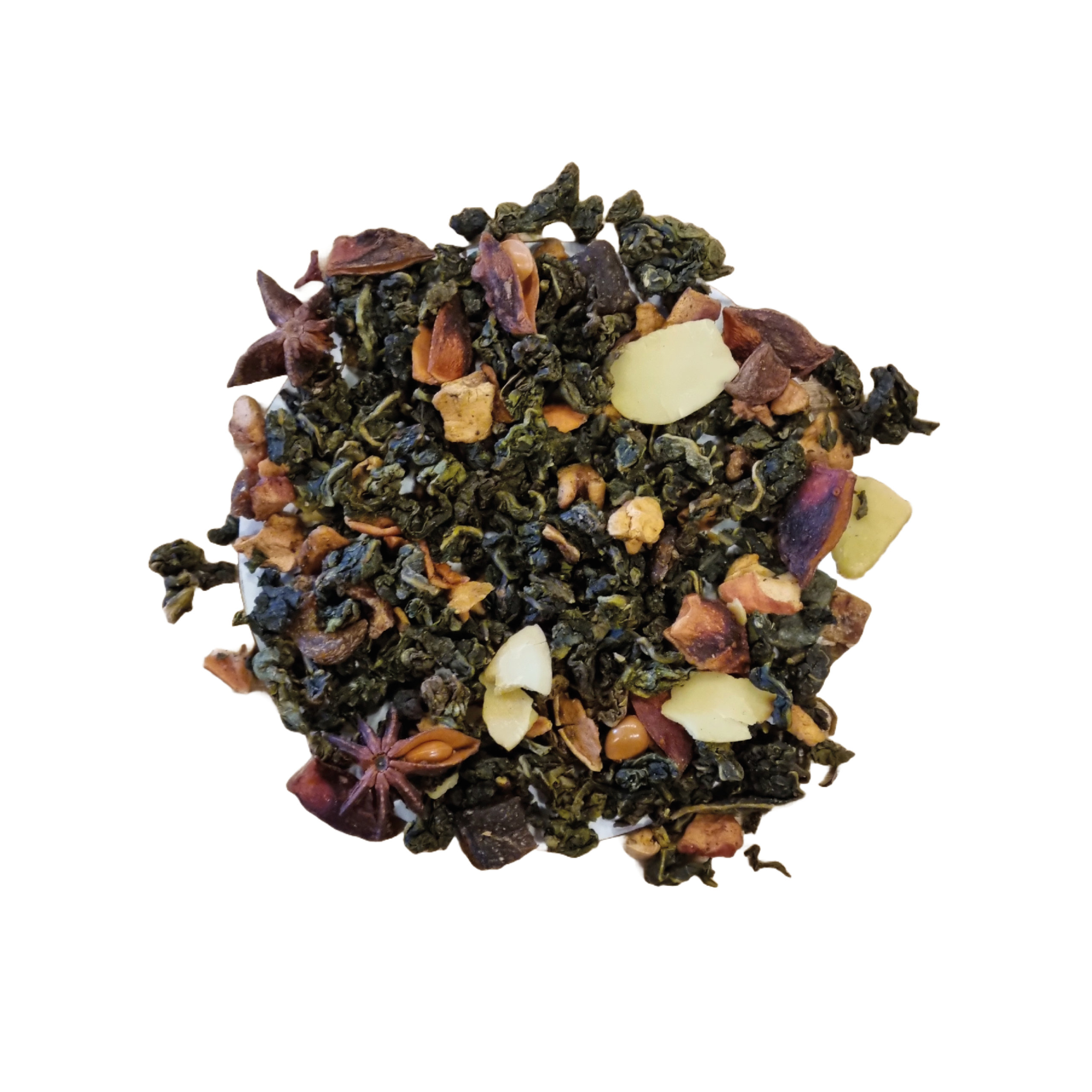 Oolong thee (56%), Geroosterde Appel, Dadel, Steranijs, Amandelschaafsel, Abrikozen, Natuurlijk Aroma