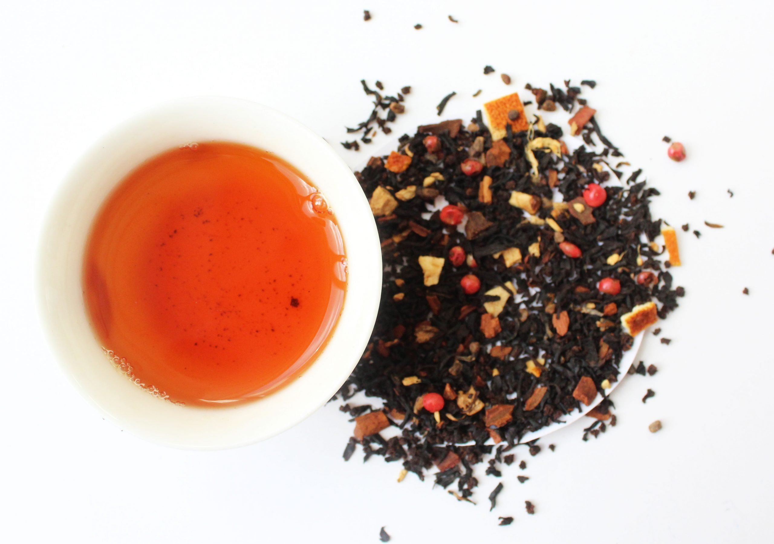 Zwarte thee, Cassia, Kardamom, Gember, Sinaasappelschil, Aroma’s, Rose peperkorrels, Vanille.
