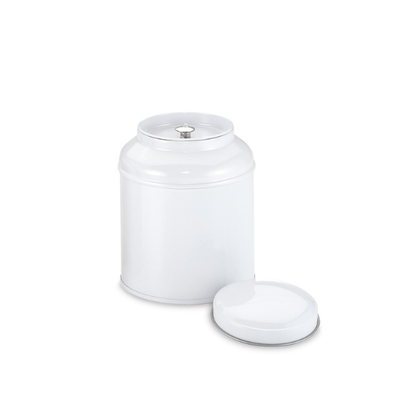 Melkbusvormig blik voor ongeveer 100 gram thee. Hierin kun je gemakkelijk je losse thee bewaren.
