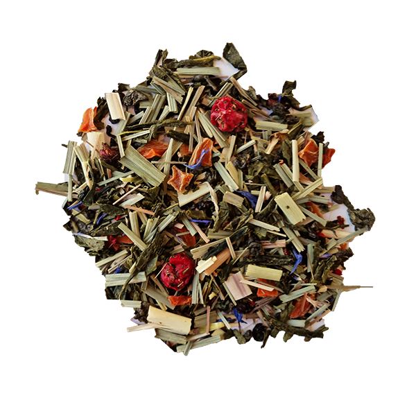 Groene thee, Citroengras, Wortel, Rode en Zwarte Bes, Granaatappel, Korenbloesem, Natuurlijk Aroma.