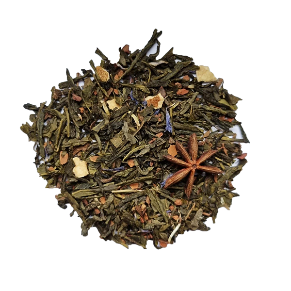Groene thee Sencha* & Chun Mee* (China), Kaneel*, Sinaasappelschil*, Natuurlijke Bourbon Vanille Smaak, Natuurlijke Amandel Smaak, Witte thee Mao Feng* (China), Steranijs*, Mandarijnolie*, Mandarijn*, Tonkabonen*, Korenbloem* *van gecontroleerde natuurlijke teelt