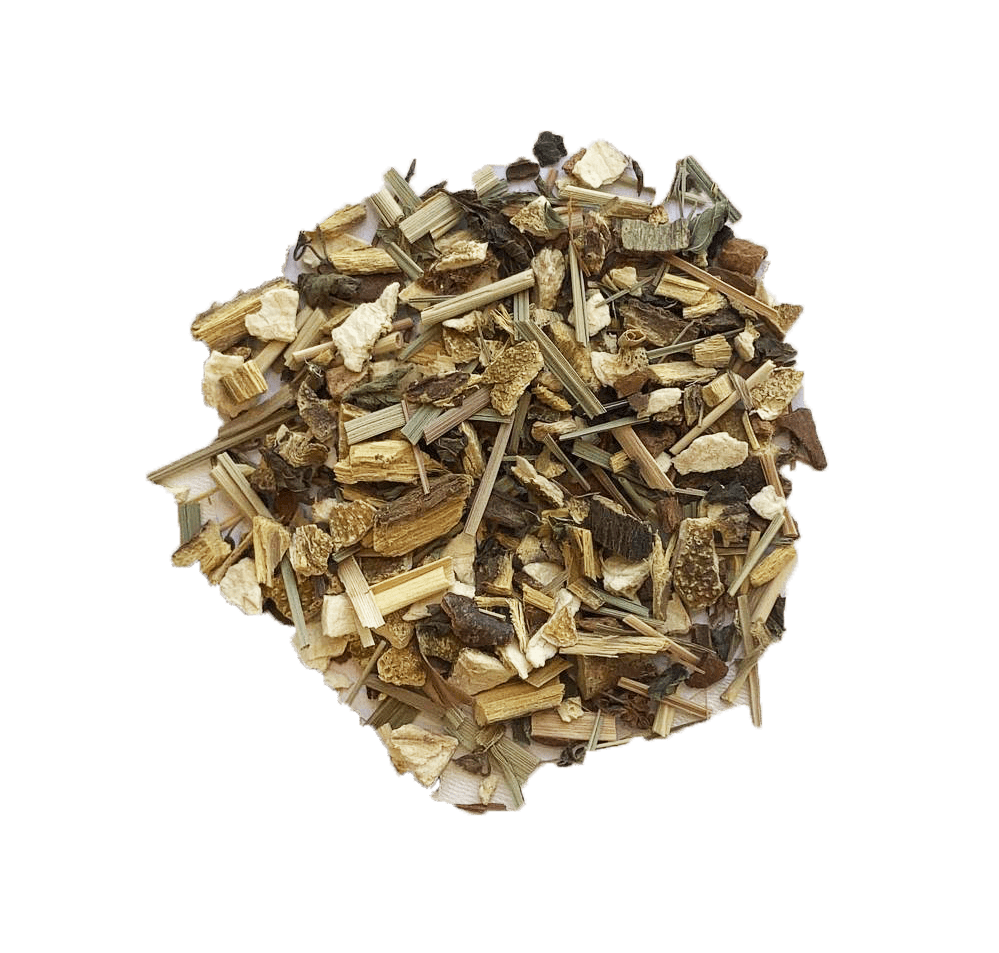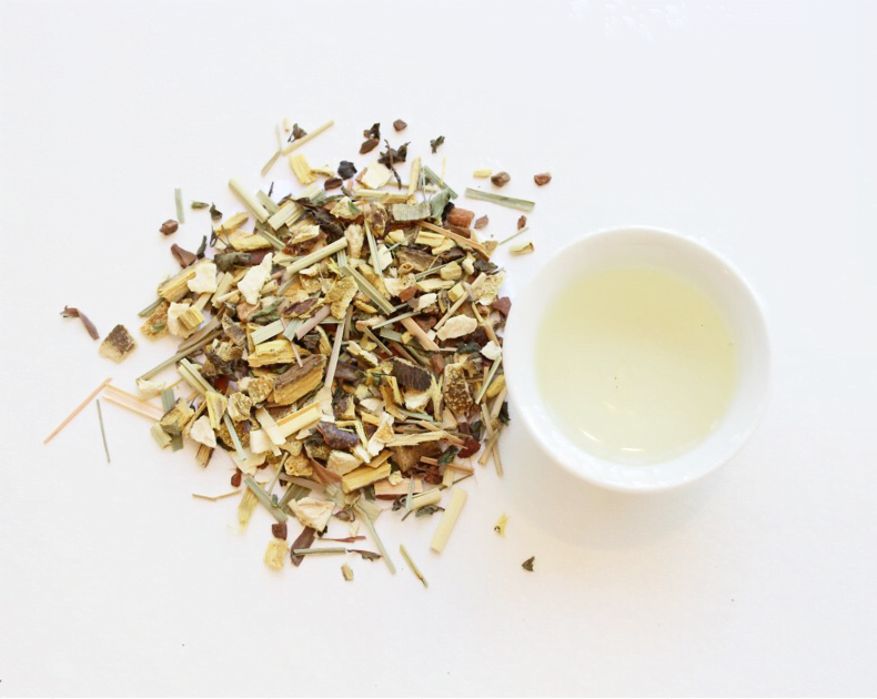 Zoethoutwortel*, Sinaasappelschillen*, Kaneel*, Citroengras*, Pepermunt*, Citroenmelisse blad*.