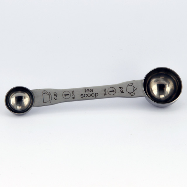 Deze dubbele maatschep; het perfecte hulpje voor de theeleut! Met behulp van deze dubbele maatschep krijg je de juiste hoeveelheid voor een perfect kopje losse thee én de andere kant is goed voor een grote theepot.