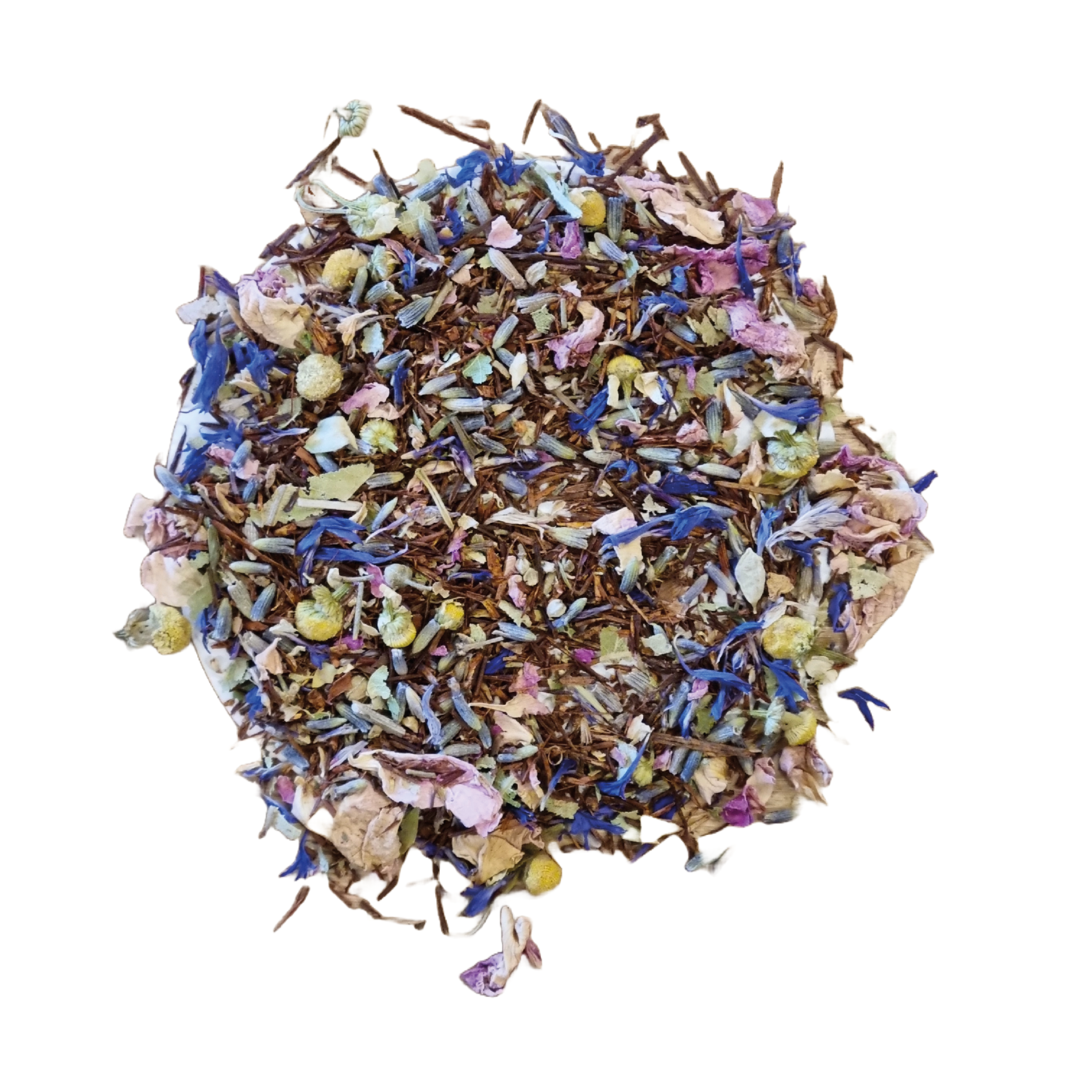 Rooibos*, Rozenbloesem*, Lavendel*, Lindebloesem*, Kamille*, Korenbloem* *van natuurlijke oorsprong