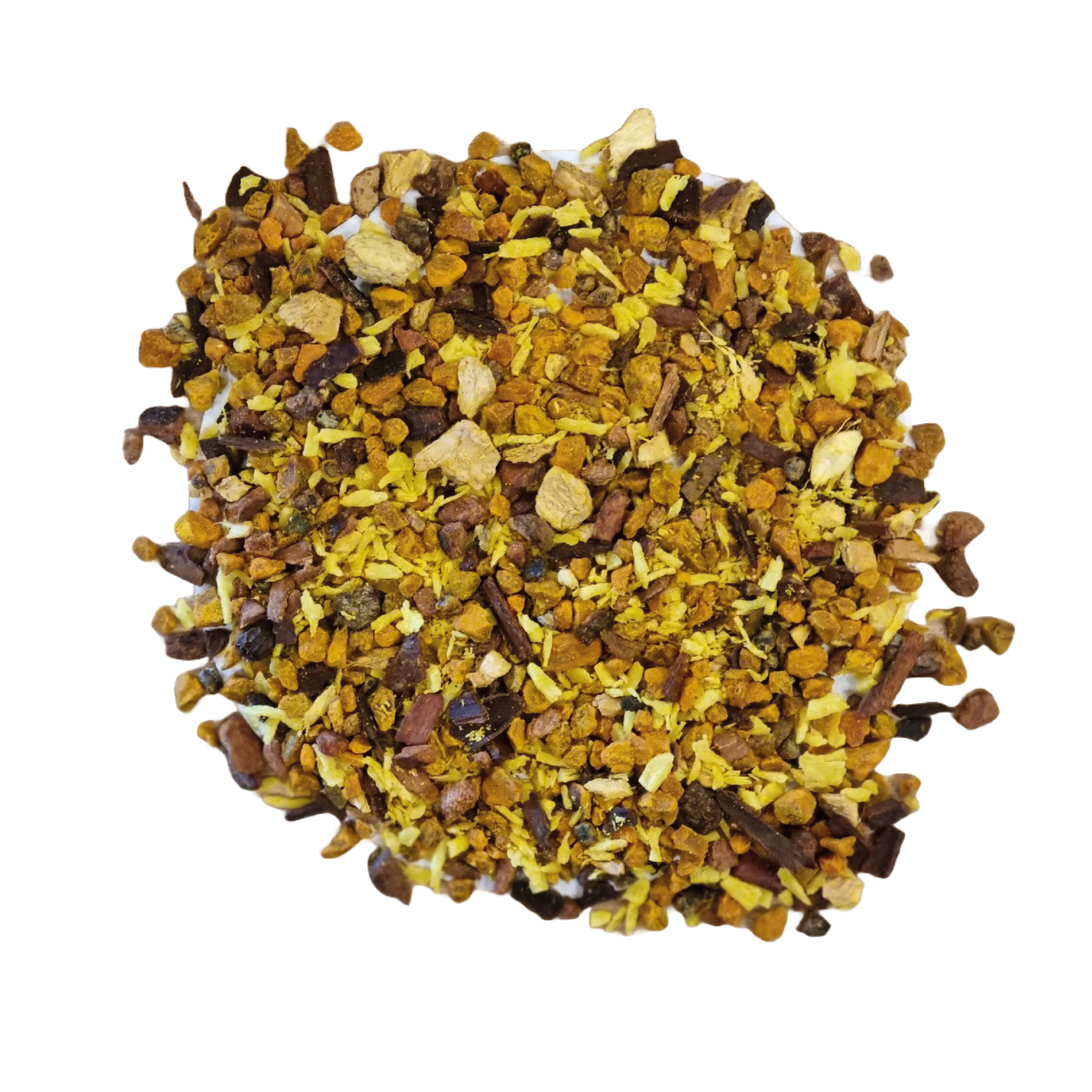 Heerlijk geurende, verwarmende, natuurlijke specerijenmelange. Drink hem als thee of voeg opgeschuimde melk toe voor een Golden Milk of een Kurkuma Latte. Cafeïnevrij.