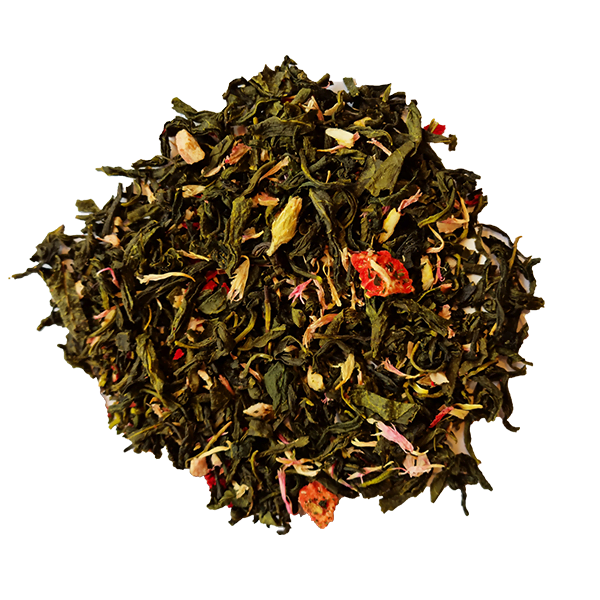 Groene Thee (92%), Aroma, Aardbei (2%), Granaatappelblaadjes, Roze Korenbloemblaadjes, Rabarber (1%)