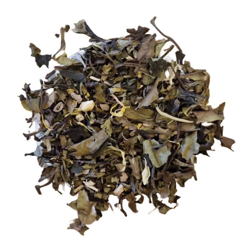 Witte Thee (69%), Kaneel, Nootmuskaat, Wit Sandelhout, Kardemom, Aroma, Vanillestukjes, Natuurlijke Sandelhoutsmaak, Jasmijnbloesem, Goudsbloemblaadjes